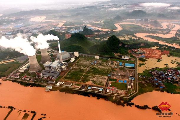 图为正在经历洪峰的柳州电厂稳定发电