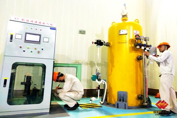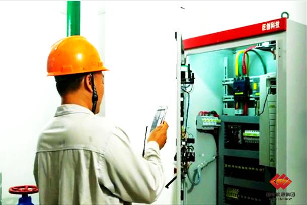 图为员工正在检查生产现场调速器油压配置
