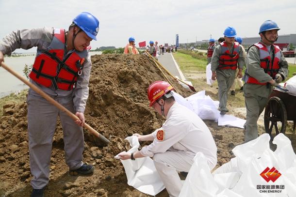 7月12日8时,长江湖口站水位达到22.40米,超警戒线2.90米,且仍呈上涨趋势。为确保平安度汛,江西省湖口县防指应急部署,对沿江4座干堤加筑子堤,增强防洪抗险能力,国家能源集团国华电力九江电厂组织员工积极投身上坝,领导班子靠前指挥,带领由各部门、徐电项目部、永州青年实习队、各承包商队伍共计一百余名职工组成的党员先锋队和青年突击队,对园区沿江堤坝进行加高加固。
