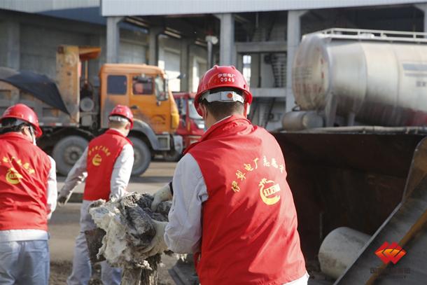 图为“红石榴”党员突击队清理现场卫生