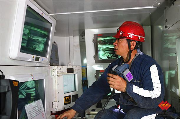 图为正在通过视频监控查看工作面运行状况