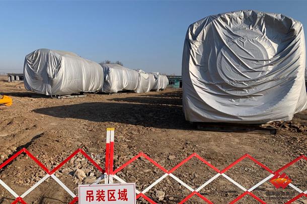 图为和风公司对吊装施工现场重要设备加盖防雨罩