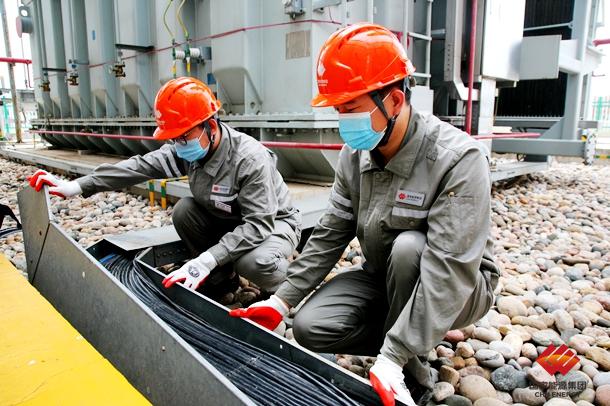 图为朝阳公司员工检查电缆槽盒防水密封情况