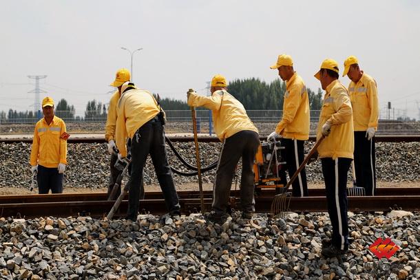 图为包神铁路精气十足的检修人员
