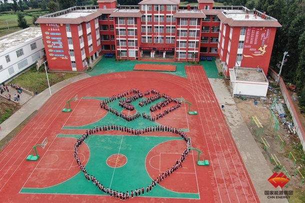 为感恩国家能源集团对阿布泽鲁小学的援建,该校组织308名学生利用周末时间在学校操场上组成集团LOGO标识和一颗爱心的图形,并以歌曲《感恩的心》分别用手语和歌唱两种方式表达对国家能源集团的感恩。