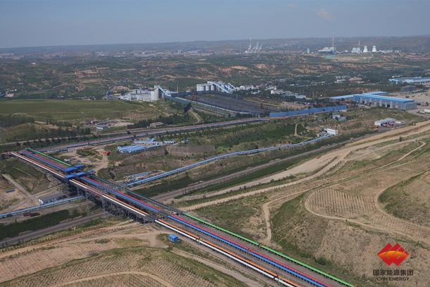 准能集团的煤炭从这里开始它的绿色之旅。五个破碎站分别连接五条皮带,皮带全长43公里,自东南向西北蜿蜒而行。