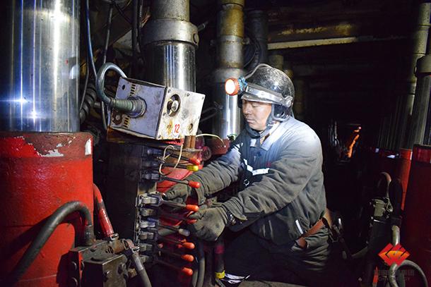 图为职工在检修绞车确保安全生产