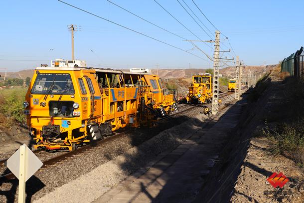 图为清筛机正在进行线路维护作业