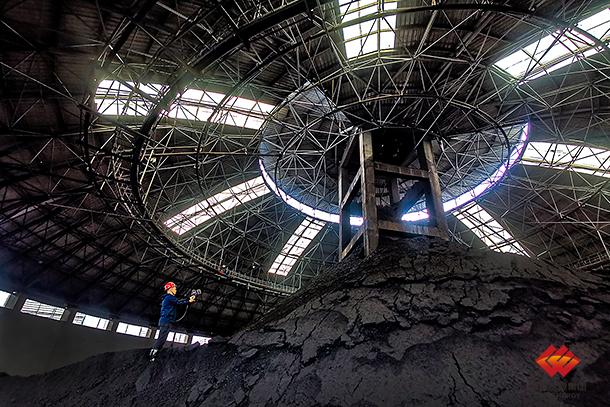 图为职工手持三维激光扫描仪采用三维测量技术进行盘煤验量。