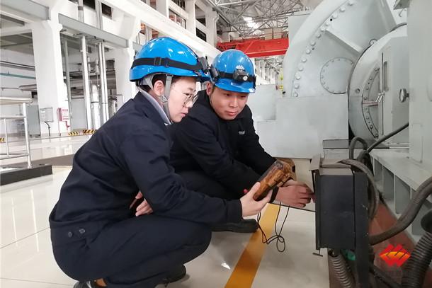 图为检修人员检查发电机转子温度