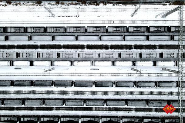 图为点岱沟站场内整齐排列的列车正在等候接空交重作业