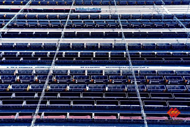 图为神朔钱朱盖塔站空重车列有序编组