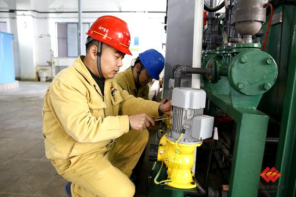图为热控专业人员正在更换脱硫废水区域设备标识牌。