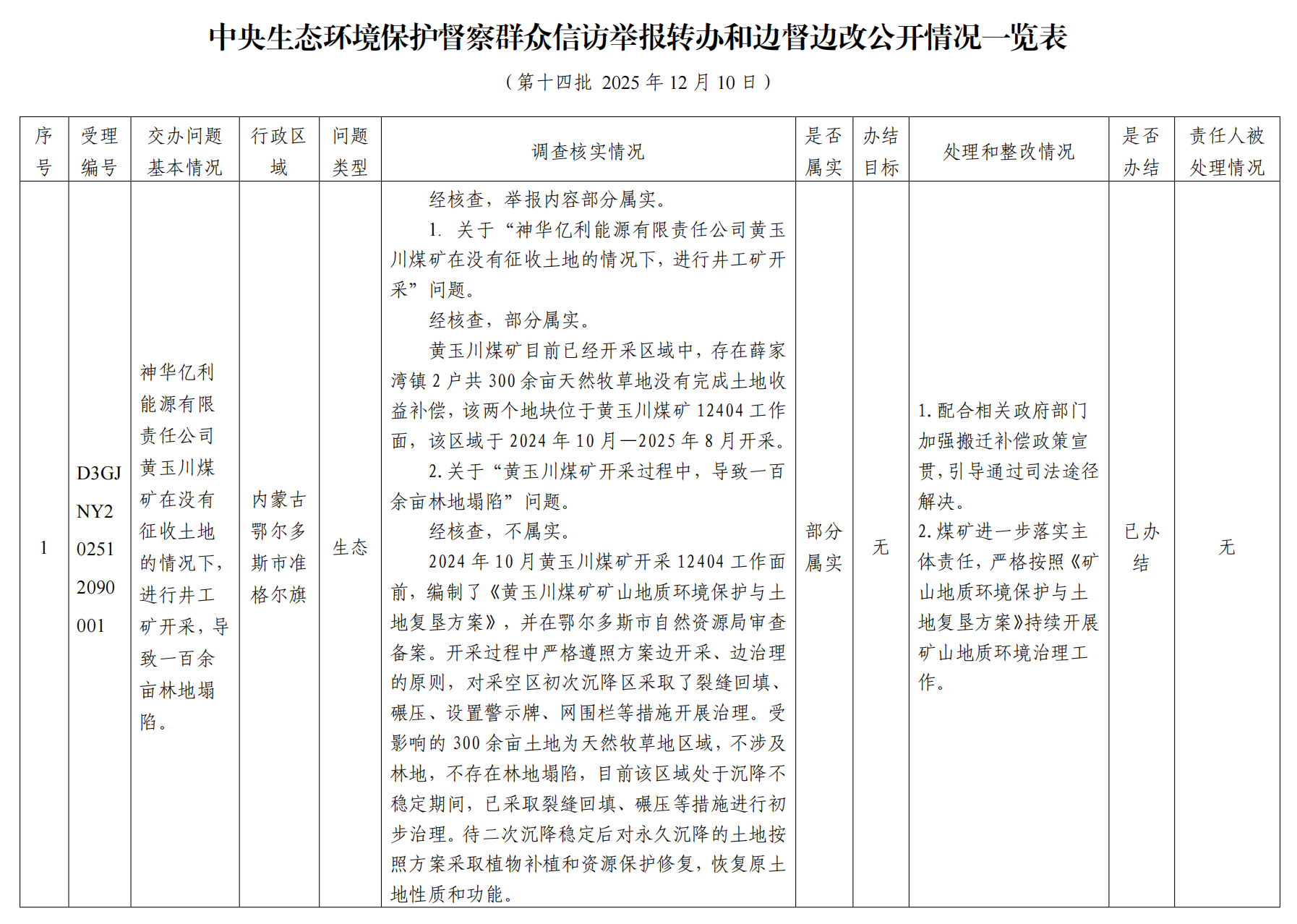 中央生态环境保护督察群众信访举报转办和边督边改公开情况一览表(第十四批 2025年12月10日)