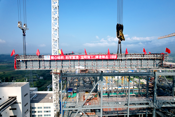 自二期项目动工的那一刻起,工地上便像是被按下了快进键,无数个日夜,无数双眼睛紧紧盯着工程进度,每一个预定的时间节点,都在众人的努力下不断被刷新。截至目前,项目的里程碑及三级网络计划执行率达到了令人惊叹的100%,在集团内同期项目中一马当先,提前完成锅炉大板梁验收、烟囱结构封顶等8个年度里程碑节点,主厂房结构到顶、#2煤场投运等刷新同类型火电机组建设纪录,烟囱筒壁、水塔人字柱等精细化质量管理亮点被集团质量管理中心推荐宣传,成为了众人眼中的标杆。