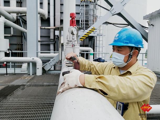图为职工正在进行阀门“定期体检”工作