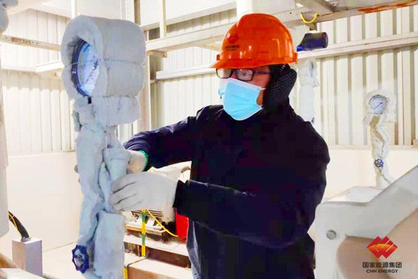 图为宿迁发电厂检修人员正在为设备“增添棉衣”