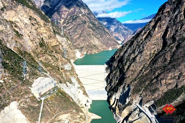 图为猴子岩电站水库进入冬季枯水期蓄水