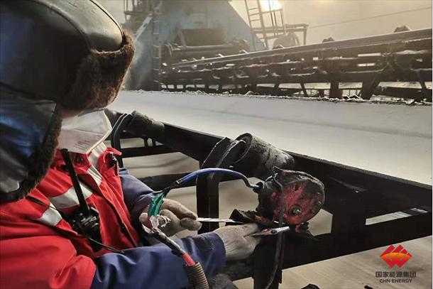 图为储装中心维修电工处理胶带机皮带保护故障
