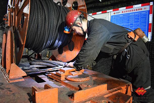图为职工在检修绞车确保安全生产