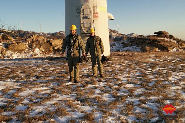 图为广水风电公司运维人员在零下8度的户外巡检消缺