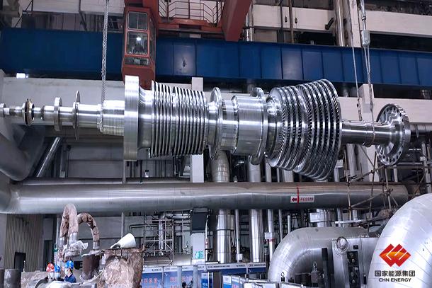 图为吊装机组高中压转子