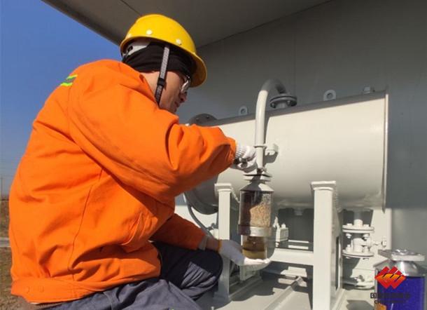 图为江苏泰州公司运行人员给设备测振
