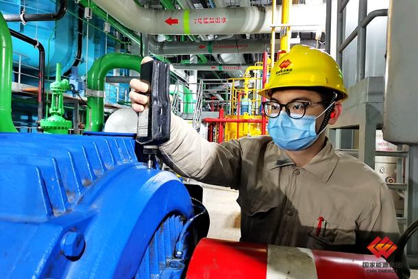 图为国电电力庄河公司维修人员检查水泵振动情况