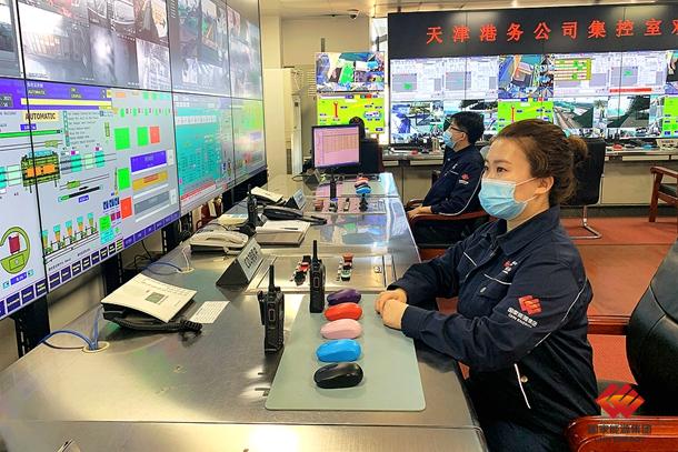 图为天津港务集控员有序推进日作业计划任务