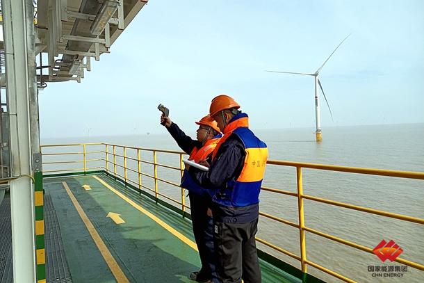 图为国华投资江苏方南风电场值班人员检查设备