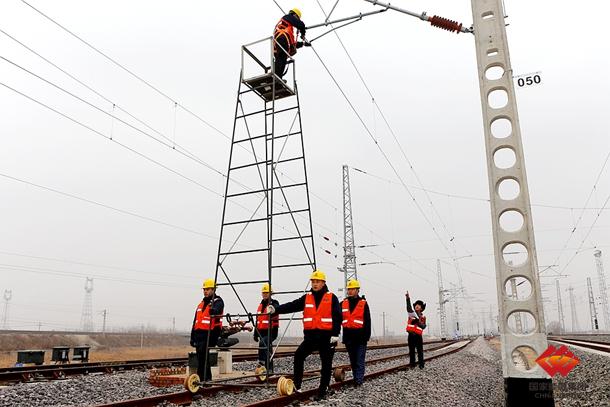 图为黄大铁路供电检修人员保障供电线路畅通