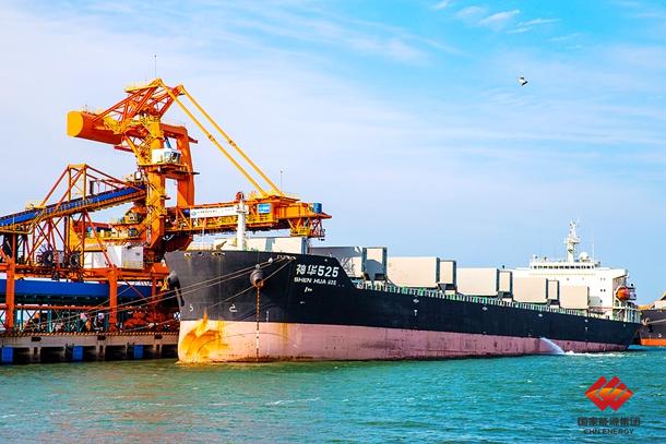 图为航运公司神华525自有船舶停靠码头装货