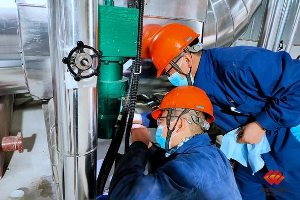 图为华北衡丰公司汽机调速班维护采暖设备