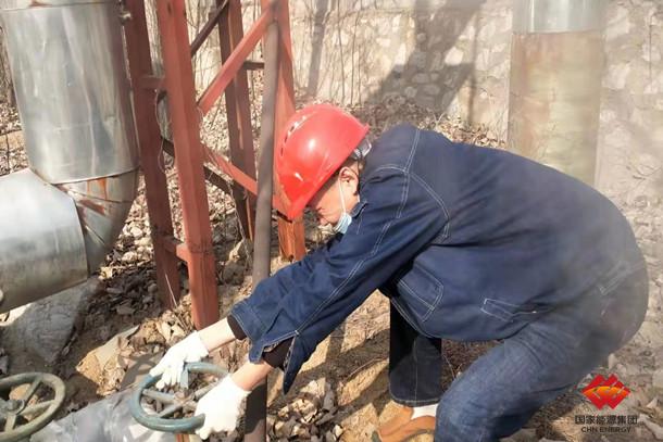 图为泰安公司供热人员为工业蒸汽用户疏排水