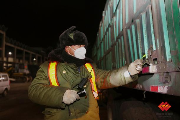 图为煤场值班员检查运煤车入厂铅封情况
