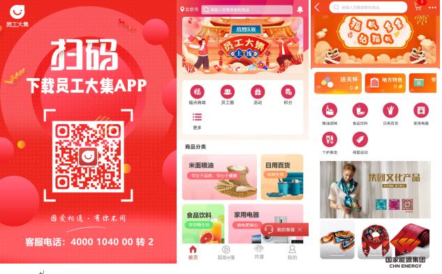 根据工会服务要求和员工生活所需,国能e购“员工大集”提供商品电商采购、信息资讯分享、线上活动开展等三大类服务,涵盖信息窗、提素质、员工圈、惠生活、汇关爱等特色板块。平台通过发挥物资公司专业化采购优势,将质优价廉的商品以内购价格惠及集团员工个人。目前,已成功引入爱如电、南粤优享家、爱心帮扶专区等的6大类近2万种优质商品,同时上线集团文化底蕴丝巾、围巾、领带等特色文化产品。此外,依托先进的互联网信息技术,为员工搭建线上交流、线下互动的便捷平台,提供买电影票、订蛋糕、遇见佳缘等服务,满足员工的生活娱乐需求。