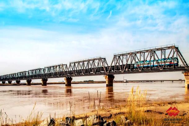 图为运煤专列驶过黄河大桥