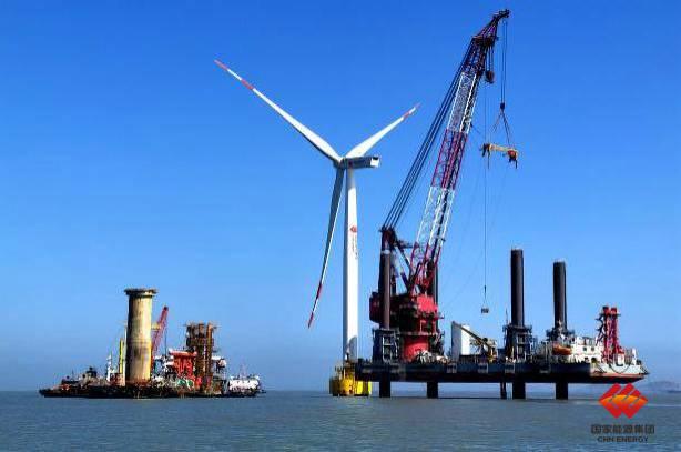 图为龙源福建莆田南日海上项目叶片吊装现装