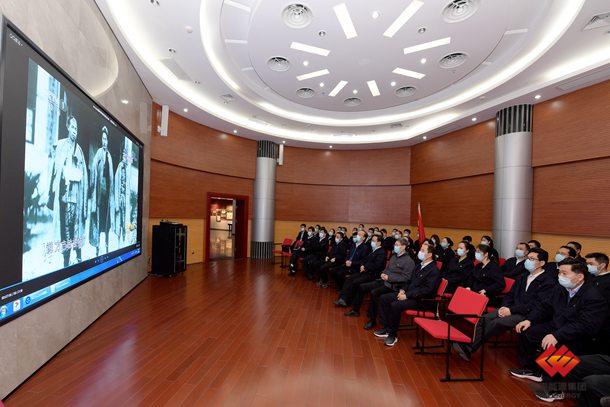 图为职工观看红色教育影片,缅怀方志敏烈士