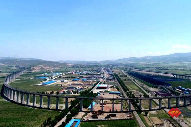 图为列车通过新朔铁路神池南特大桥