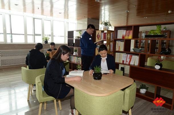 图为职工午休时间在新增设的职工书屋阅览书籍