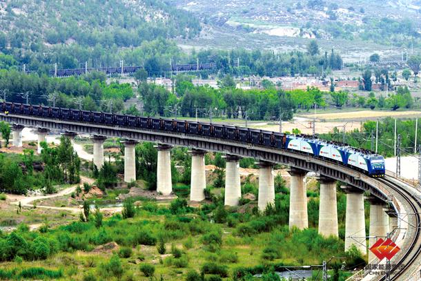 图为“3+0”万吨列蜿蜒行驶在神朔线上