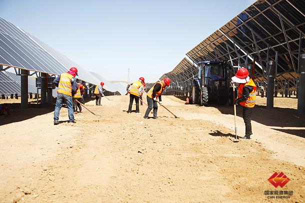 目前,布尔台生态+光伏发电区域周边已完成各类乔木种植131303株,完成各类经济和生态灌木种植488652穴,完成生态牧草种植约1500亩。