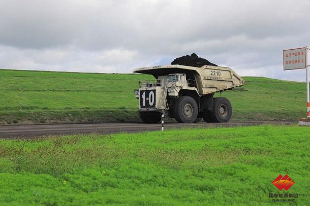 图为扎尼河露天自卸卡车正在运输原煤