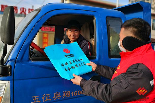 图为志愿者为通过铁路道口的司机发放铁路安全宣传材料