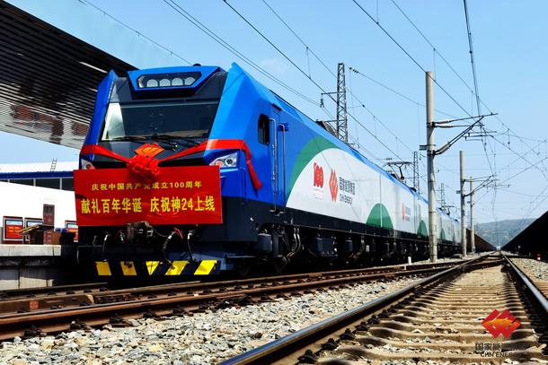 图为全球首台最大功率电力机车“神24”在神线上线运行