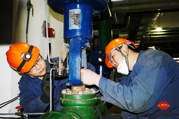 图为员工检修水-水交换器闭冷水回水调整门