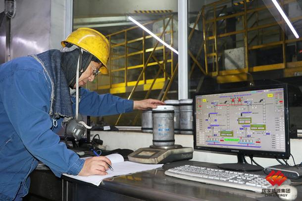 图为员工称重录入精细研磨煤样为科学掺烧提供依据