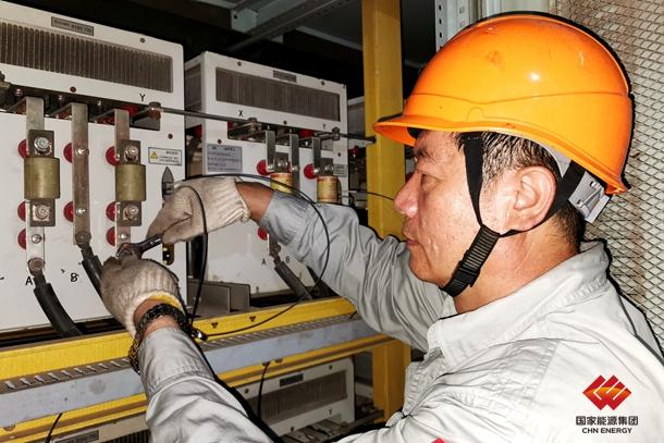 图为石嘴山公司检修人员在迎峰度夏期间消除设备缺陷