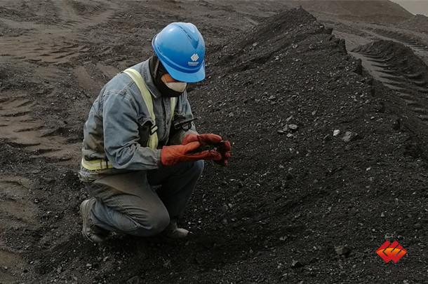 图为大坝三期燃料管理部员工监卸煤车检查煤质